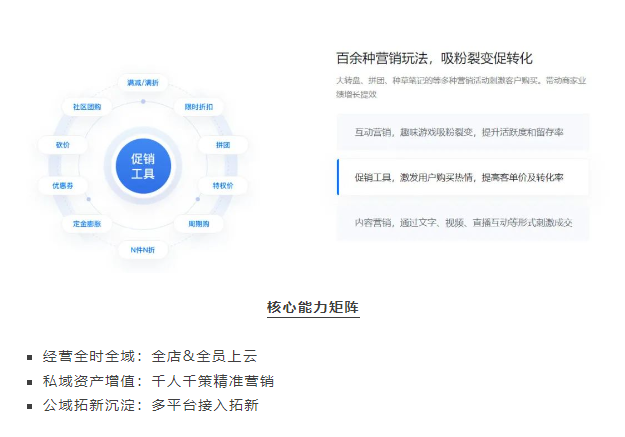 微盟智慧零售解決方案,通過門店數(shù)字化、導(dǎo)購數(shù)字化、營銷數(shù)字化、會(huì)員數(shù)字化等多個(gè)維度,幫助企業(yè)實(shí)現(xiàn)全時(shí)全域經(jīng)營,構(gòu)建私域資產(chǎn),加速零售企業(yè)數(shù)字化升級(jí)。