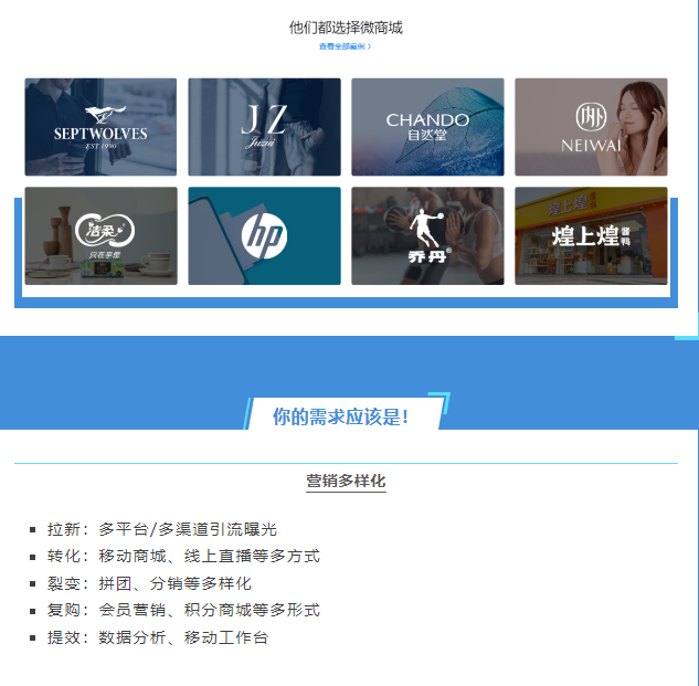 微盟微商城是全渠道小程序電商解決方案,商家可利用統(tǒng)一后臺(tái)開通、管理和經(jīng)營微信、QQ、支付寶、百度、小紅書等渠道店鋪,實(shí)現(xiàn)流量沉淀、轉(zhuǎn)化變現(xiàn)、粘性強(qiáng)化和裂變?cè)鲩L的全流程,以私域長期經(jīng)營帶動(dòng)品牌持續(xù)增長。