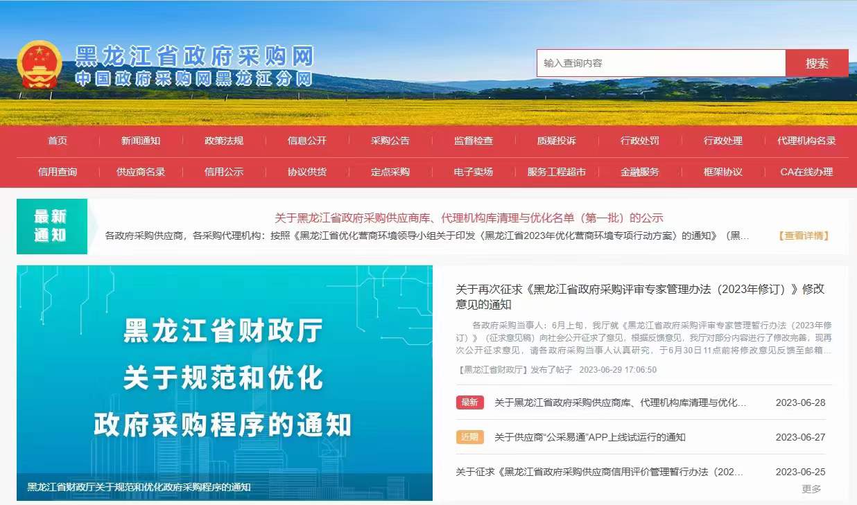 本公司現可申請入駐黑龍江省政府采購網…