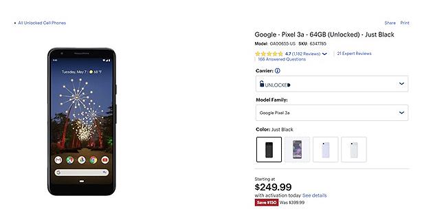如果用戶只想獲得解鎖的Pixel 3a手機,選擇“稍后激活”即可,那么百思買和亞馬遜目前的售價為300美元(約合人民幣2102元),圣誕節(jié)前可以發(fā)貨。Pixel 3a XL也只需要360美元(約合人民幣2523元)。這兩款手機均可與美國所有主要運營商合作。